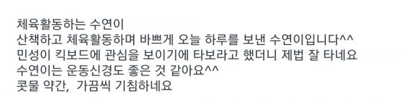 | ¼±»ý´Ô²²¼ ¼ö¿¬À̰¡ ¿îµ¿½Å°æÀÌ ÁÁ´Ù°í ¾Ë¸²Àå¿¡ Àû¾îÁֽðí ÇÏ¿øÇÒ¶§µµ ¼ö¿¬ÀÌ ¿îµ¿À» Âü ÀßÇÑ´Ù°í ĪÂùÇØ Á̴ּµ¥ ºÒÇöµí ÅõÆ÷ȯÀÌ ¶°¿Ã¶ó¼ È¥ÀÚ ¼ÓÀ¸·Î ¸¹ÀÌ ¿ô¾ú´Ù ¤»¤» ¼ö¿¬À̰¡ ¾î¸°ÀÌÁý¿¡¼µµ Àß Áö³»¼ °¨»çÇÕ´Ï´Ù |